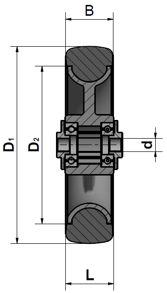 | Diameter D1 | Diameter D2 | Tyre width B | Hub length L | Axial dimension d | Load capacity | ||||
